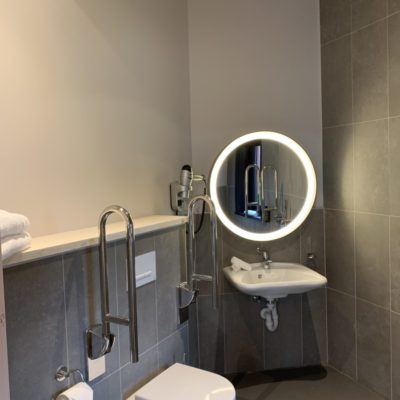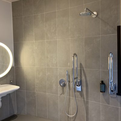 1 aangepaste kamer met 1 dubbel bed (160 x 200), eigen badkamer met douche en aangepast toilet