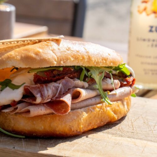 Une gamme au choix de sandwichs/Tramezzo/Pinsa/Plats préparés dans notre cuisines ouverte qu’il suffit de réchauffer et de servir.